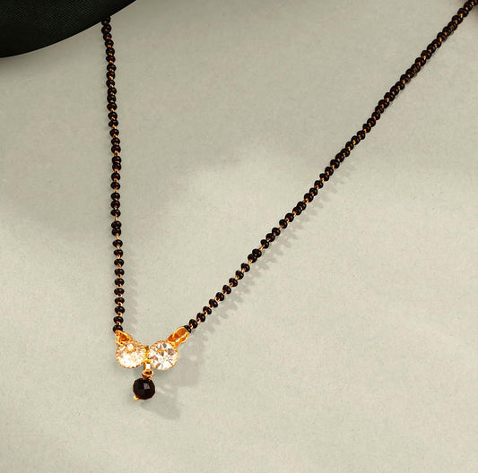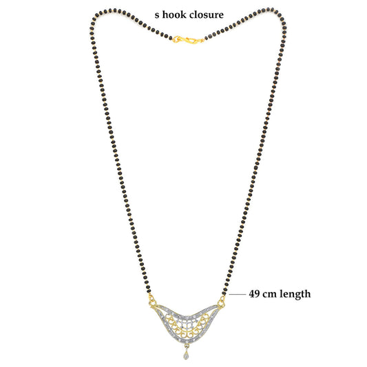 Gold Plated Mangalsutra Set: American Diamond Pendant Necklace | 42 cm | Black Beads | For Women