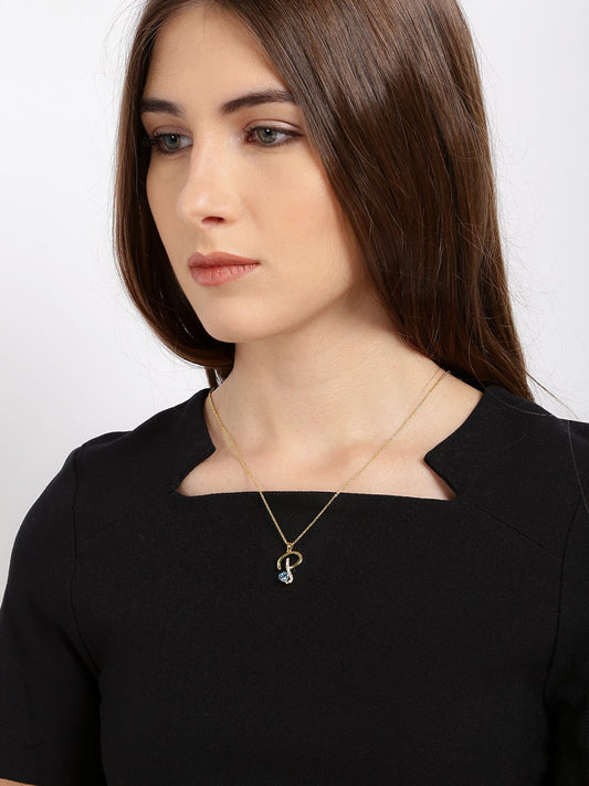 Golden Pendant for Women Alphabet Initial P Pendant Gold Plated Blue Crystal Heart Chain Pendant for Women and Girls