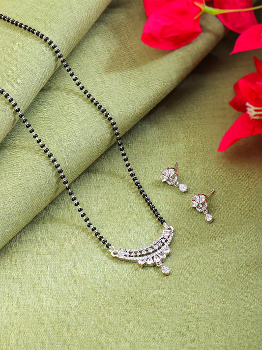 Silver Plated AD Mangalsutra Set - Elegant, Traditional Design | Black Beads Chain | 42 cm | Silver