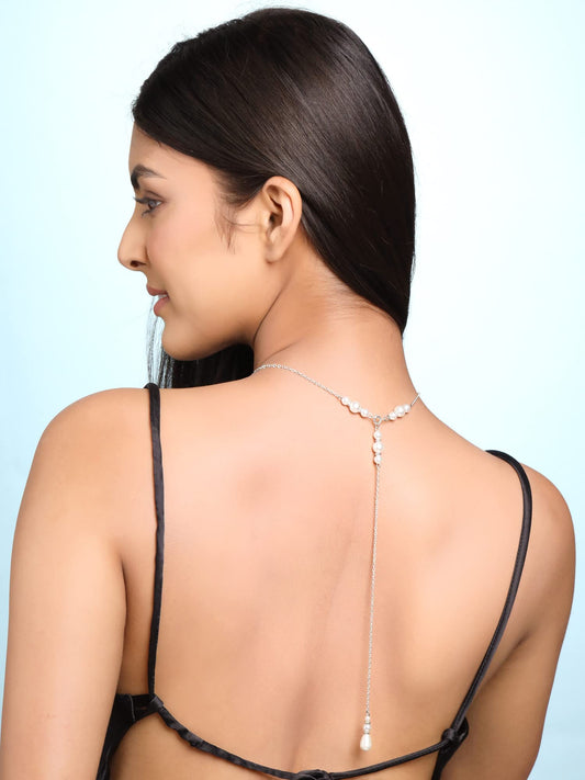 Back Necklace For Women Silver Tone Pearl Embellished Back Chain For Women and Girls