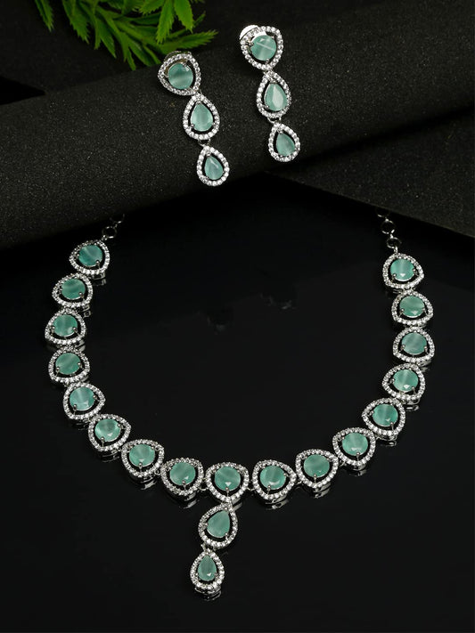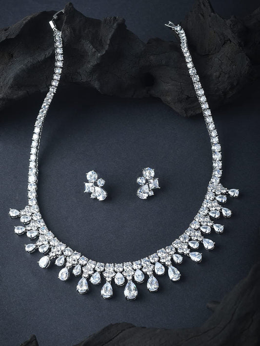 Jewellery Set for Women Rhodium Plated White Real Cubic Zircon Necklace Set Floral Design Classic CZ Jewellery Set For Women and Girls.