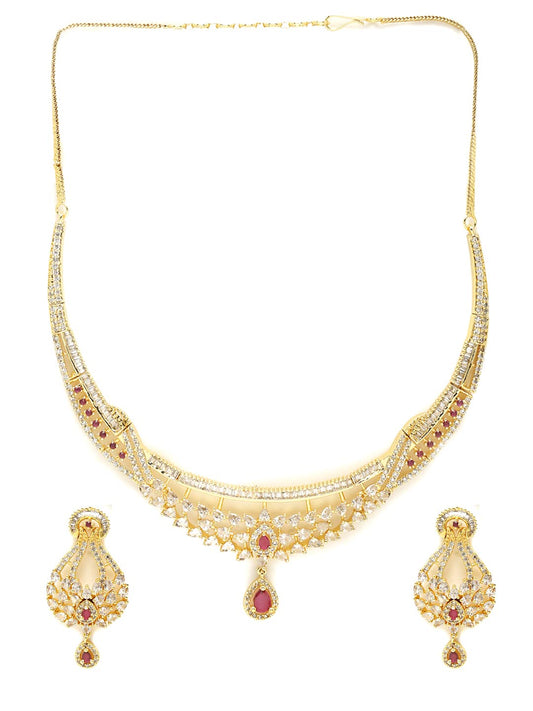 Jewellery Set for Women and Girls American Diamond Jewellery Set | Gold Plated Authentic AD Necklace Set for Women | Birthday Gift for girls and women Anniversary Gift for Wife