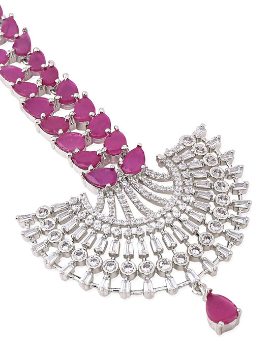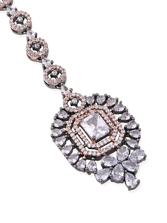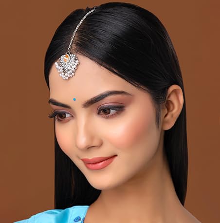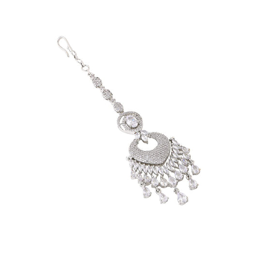 Maang Tikka for Women Beautiful AD/American Diamond Studded Rhodium Plated Crystal Maang Tikka for Women and Girls. (Design 16)