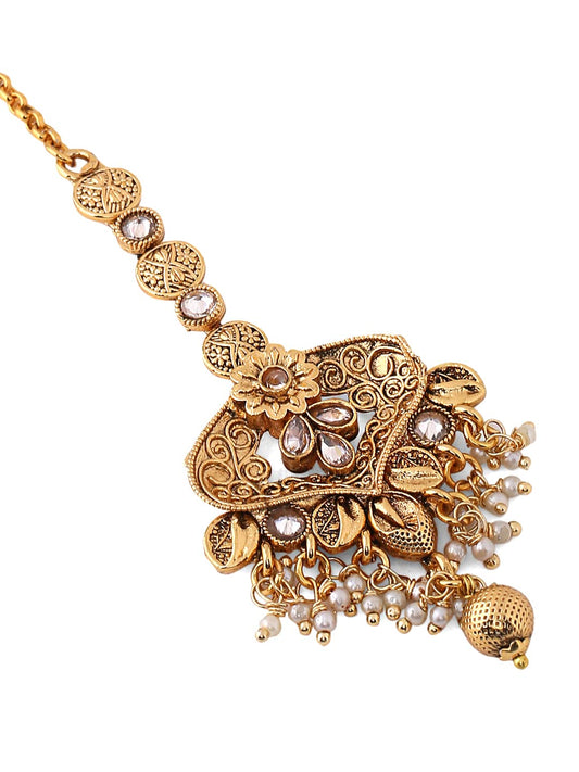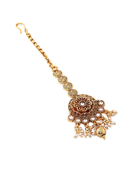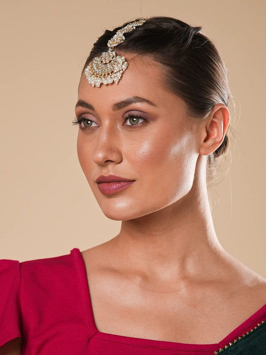 Maang Tikka for Women Gold Toned Pearl Drop Maang Tikka for Women and Girls