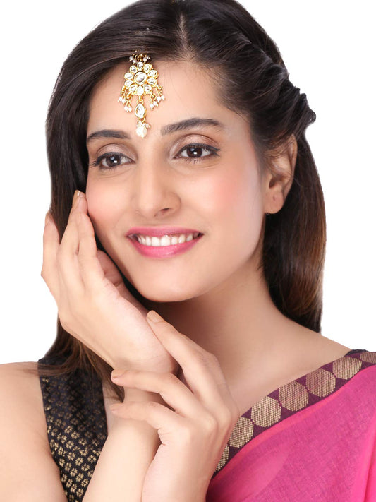 Maang Tikka for Women Kundan Maangtikka Traditional Gold Plated Moti Floral Design Ethnic Maang Tikka for Women and Girls