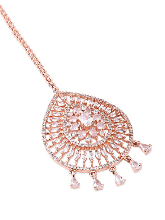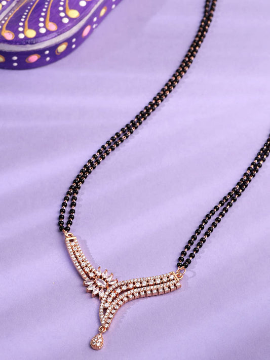 Mangalsutra for Women Rose Gold Plated AD/American Diamond Studded Floral Designed Mangalsutra for Women and Girls