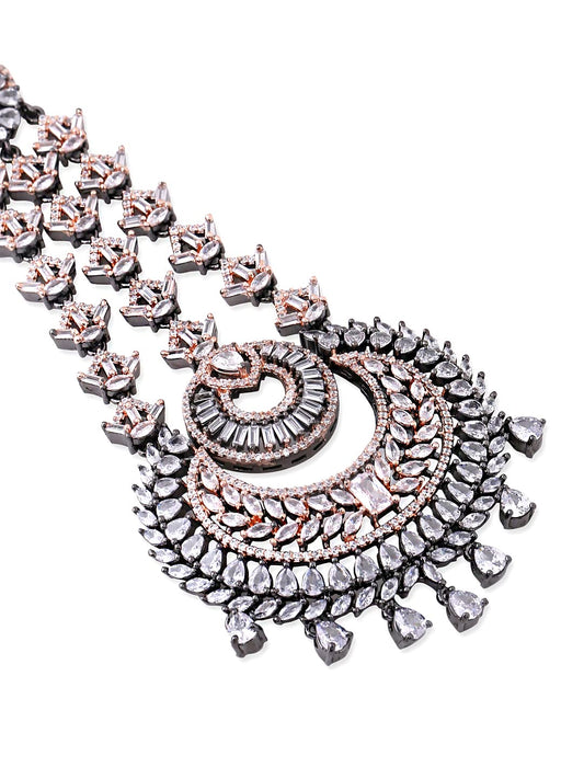 Maang Tikka for Women Beautiful AD/American Diamond Studded Rhodium Plated Crystal Maang Tikka for Women and Girls. (Design 12)