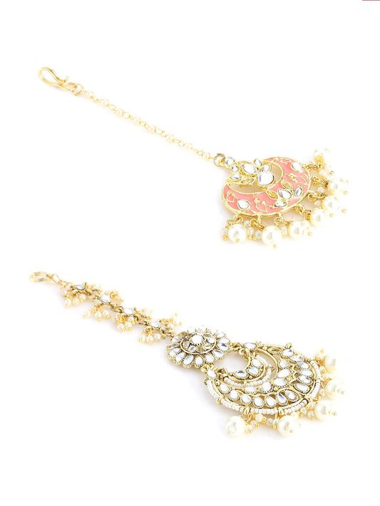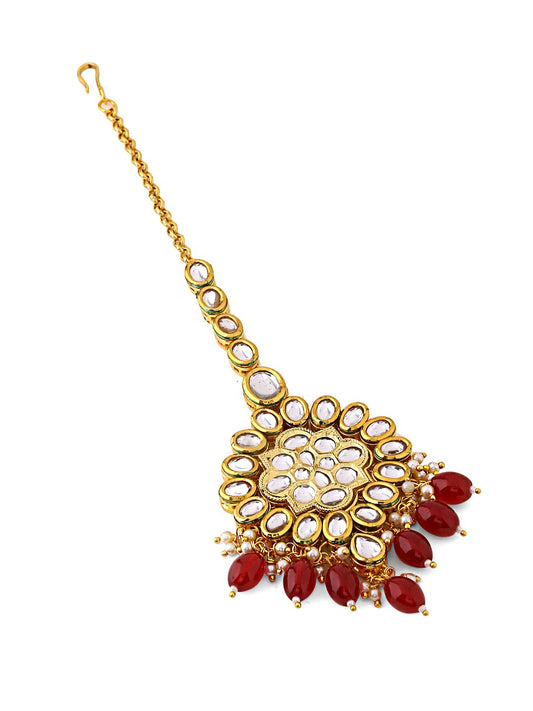 Maang Tikka for Women Kundan Studded Red pearl Gold Toned Maang Tikka for Women and Girls