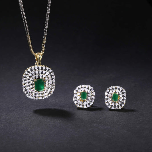 Sparkling AD/American Diamond Studded Ethnic Traditional Black Beads Meenakari Touch Designer Mangalsutra Pendant Set with Earrings for Women