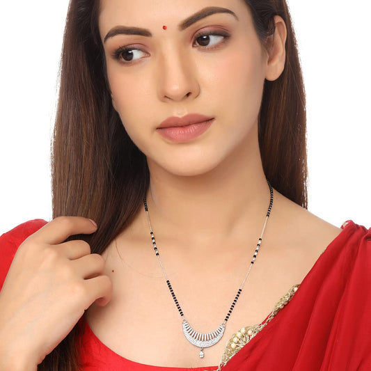 Mangalsutra for Women Silver Plated AD/American Diamond Crystal Studded Traditional Designed Mangalsutra for Women and Girls