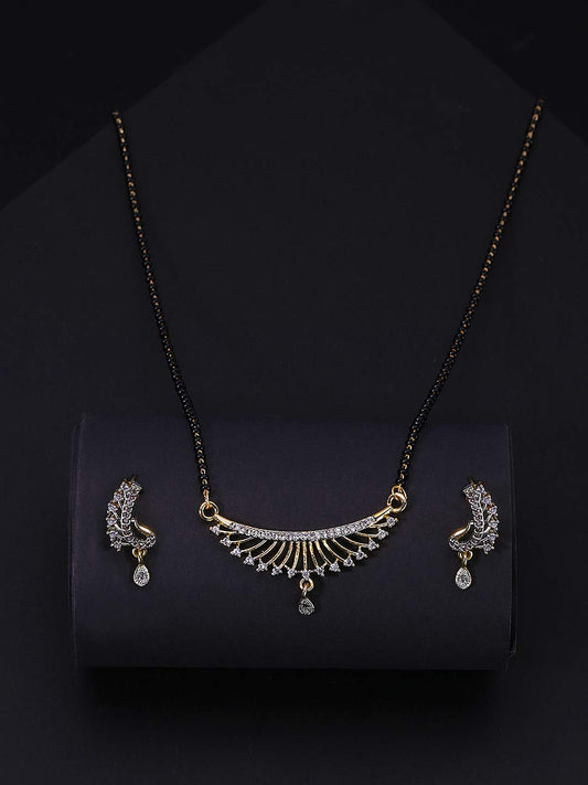 Sparkling AD/American Diamond Studded Ethnic Traditional Black Beads Golden Peacock Mangalsutra Pendant Set with Earrings for Women