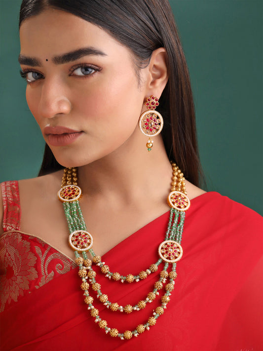 Elegant Green Jewelry Set: Necklace & Earrings | Multicolor | Latest Design