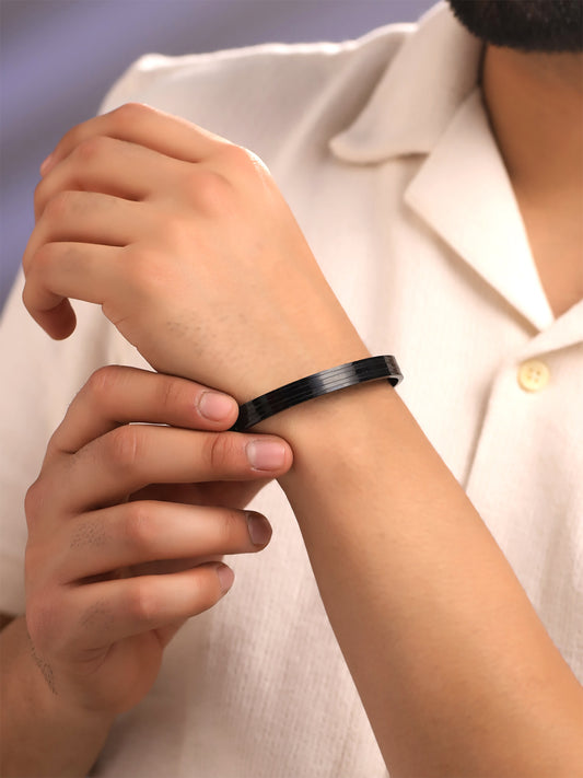 Men's Kada Bracelet: Stylish Black Stainless Steel | One Size | Hand Accessories