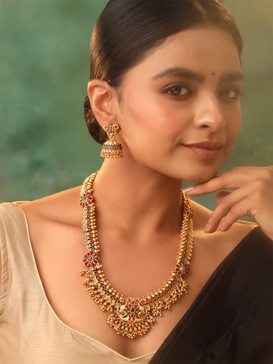 Temple Jewellery Set: Traditional Gold Plated Long Necklace | For Women | One Size | Gold