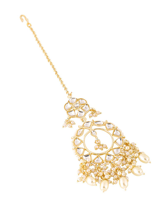 Maang Tikka for Women Gold Plated Kundan Studded Beads Drop Maangtikka for Women and Girls