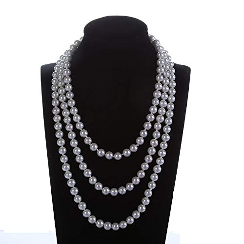 Latest Fashion Pearl Multilayer Long Necklace for Women & Girls (Grey)