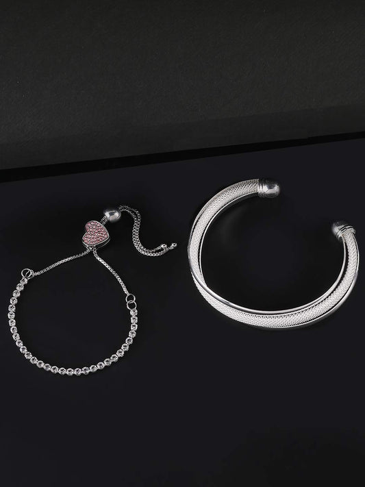 Exclusive Silver Plated Adjustable Love Heart Charm Crystal Twisting Sparkle Kadaa Bracelets for Women and Girls
