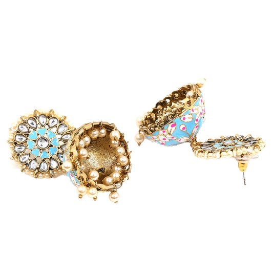 Meenakari Jhumka Earrings for Women Gold Plated Traditional Pastel Blue Jhumka/Jhumki Earrings for Women and Girls