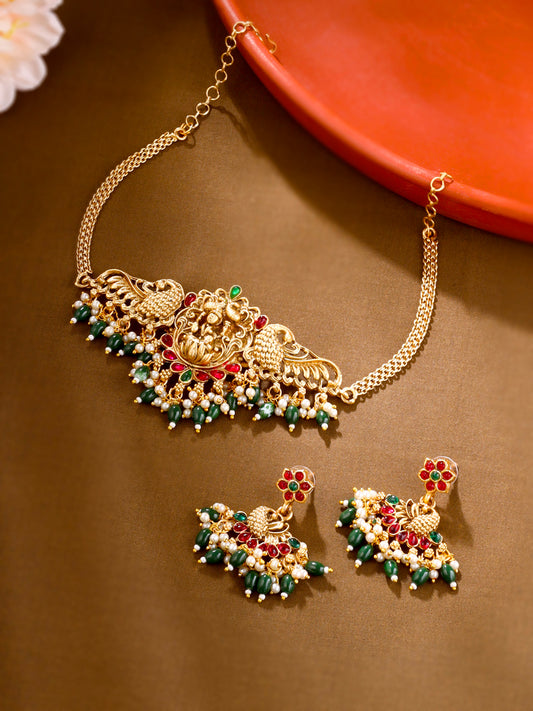 Temple Jewellery Set: Traditional Gold Plated Choker & Earrings | Adjustable Fit | Gold