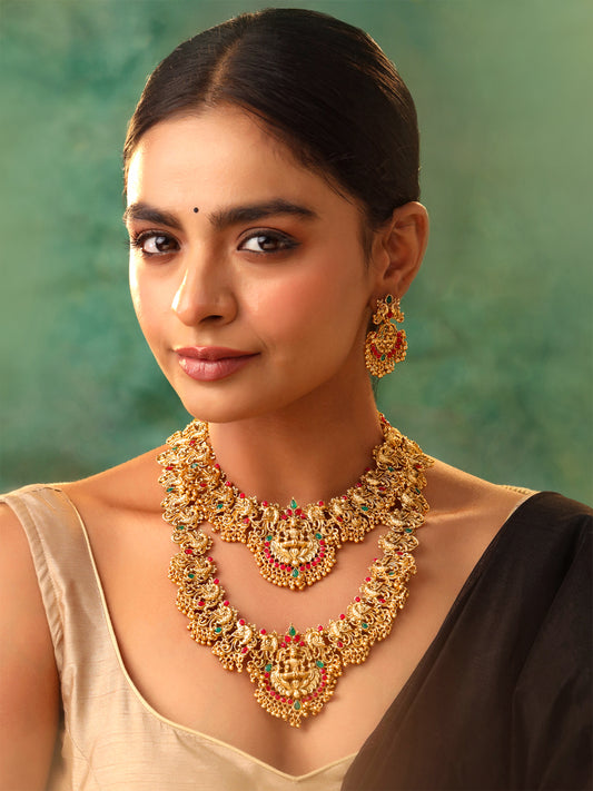 Temple Jewellery Set: Traditional Gold Plated Bridal Necklace Set with Intricate Design | 36cm Necklaces | Gold
