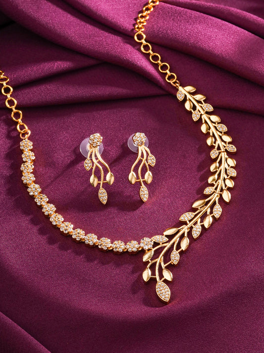 Elegant Ethnic Gold Plated AD Choker Necklace Set | Traditional Jewellery | One Size | Gold