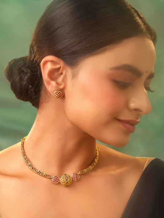 Gold Plated Choker Necklace Set: Traditional Elegance | 1 Necklace & Earring Set | Gold