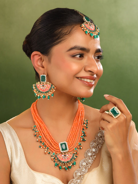 Jewellery Set: Traditional Multilayered Necklace with Semi-Precious Stones | One Size | Multicolor