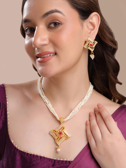 YELLOW CHIMES Crown Drop Red Gold Plated Pendant Set for Girls and Women