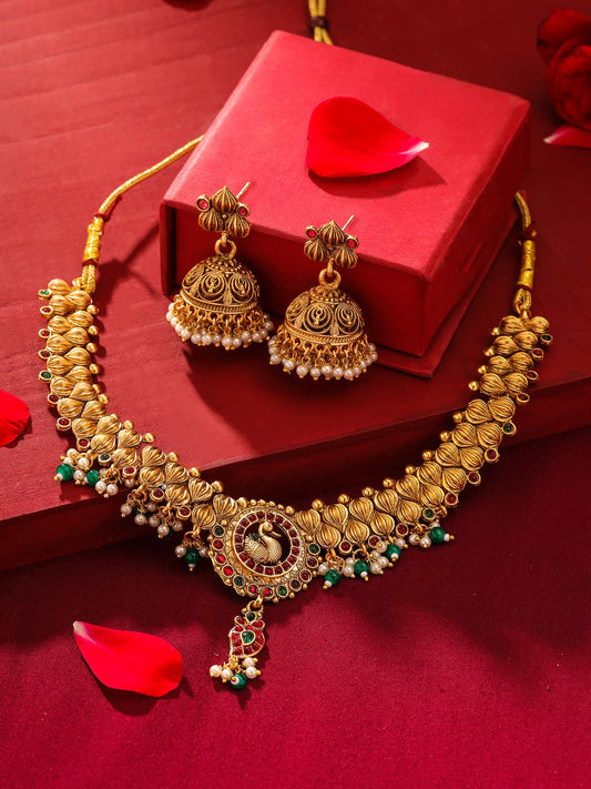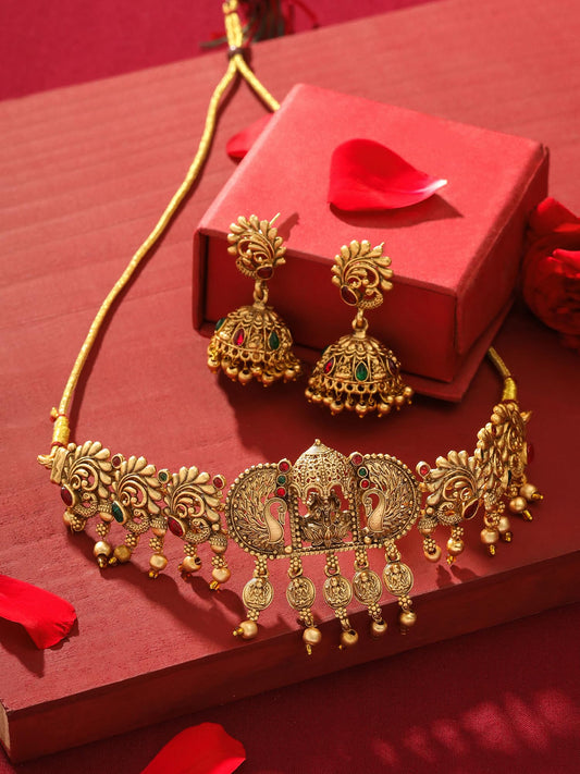 Jewellery Set For Women | Ethnic Gold Plated Choker Necklace Set for Women | Traditional Temple Jewellery Sets For Girls | Birthday Gift for Girls & Women Anniversary Gift for Wife