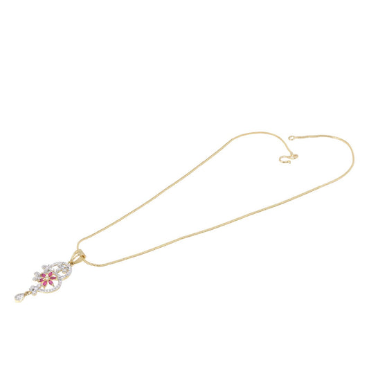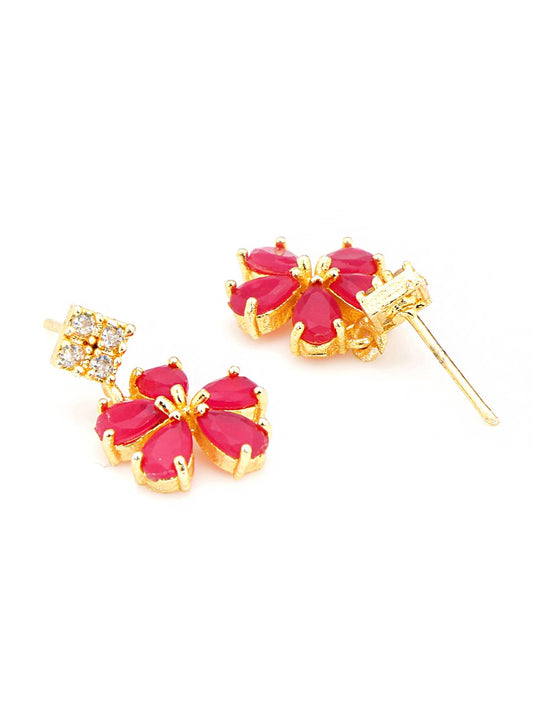 Elegant Pink AD/American Diamond Studded Gold Plated Designer Floral Charm Pendant Set with Earrings for Women & Girls