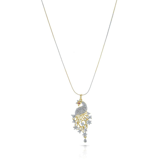 Sparkling AD/American Diamond Latest Fashion Elegant Peacock Shaped Dual Tone Jewellery Pendant Set with Earrings For Women & Girls