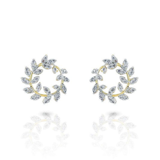 Sparkling AD/American Diamond Latest Fashion Circle Leaf Shaped Dual Tone Jewellery Pendant Set with Earrings For Women & Girls