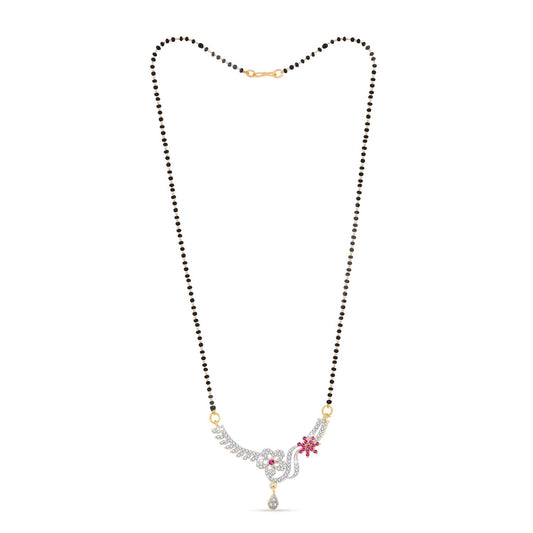 Elegant Pink AD/American Diamond Studded Ethnic Designer Black Beads Mangalsutra Set with Earrings for Women