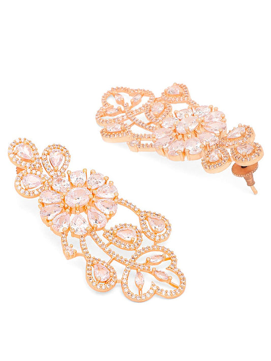 American Diamond Jewellery Set for Women Rosegold Plated Bridal Wedding White AD Jewellery Necklace Set with Maang Tikka for Women and Girls