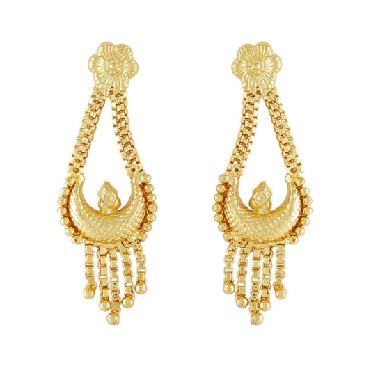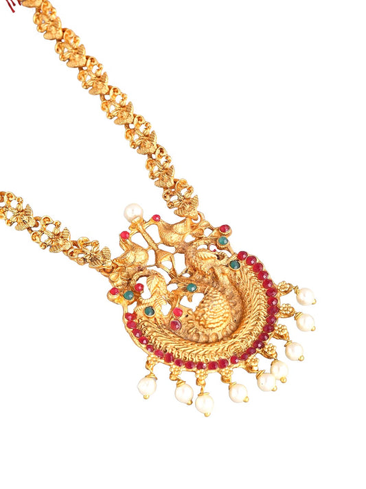 Ethnic Gold Plated Peacock Design Traditional Choker Long Haram Necklace Set Jewellery Set for Women and Girls, Medium (YCTJNS-68DULPCK-GL)