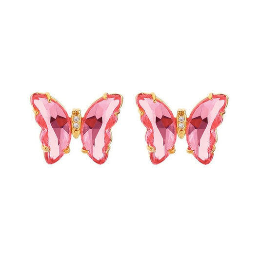 Butterfly Pendant Set for Women Elegant Gold Plated Red Butterfly Crystal Pendant Set with Stud Earrings for Women and Girls.
