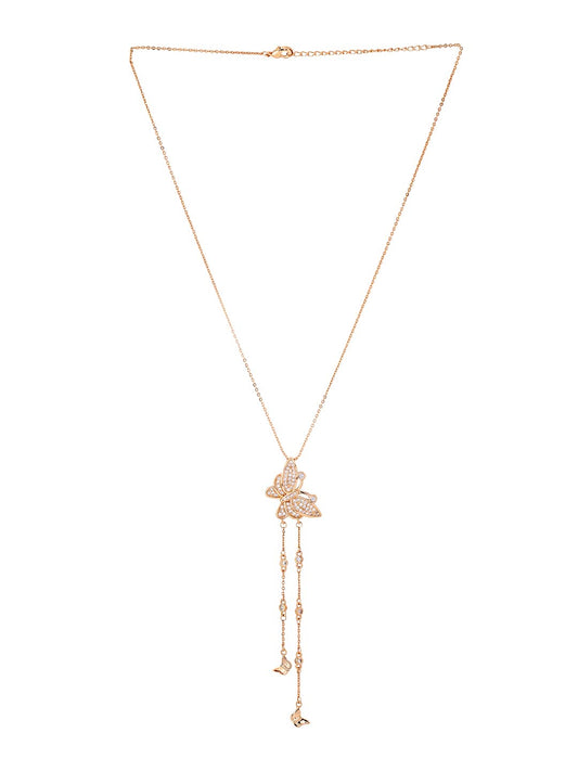 Pendant Set for Women Rose Gold Toned Leaf Designed Crystal Pendant with Earrings for Women and Girls