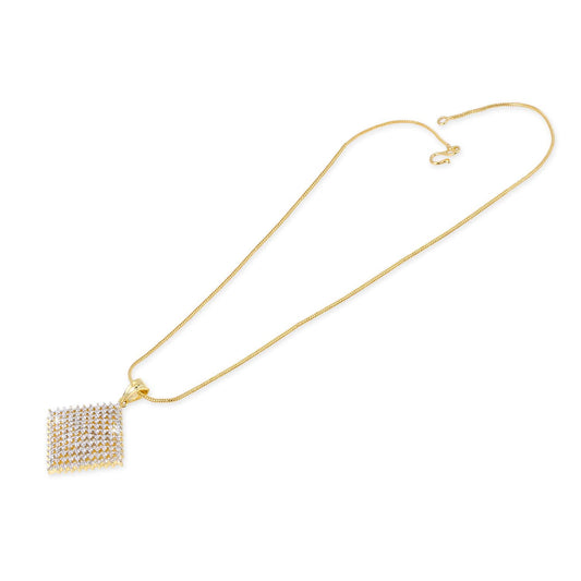 Elegant White AD/American Diamond Studded Gold Plated Designer Square Charm Pendant Set with Earrings for Women & Girls