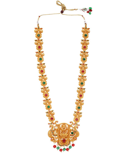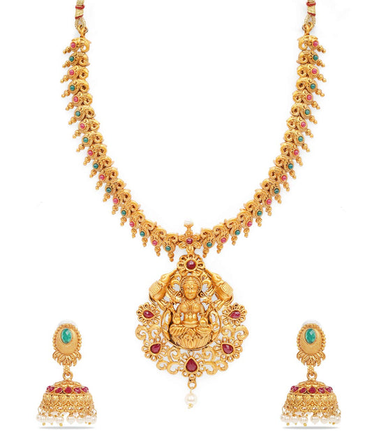 Ethnic Temple Jewellery Set Gold Plated Lakshmi Devi Jewelry Set Traditional Necklace Set by Gold Plated Jewellery Set for Women (Golden,red) (YCTJNS-11LAKMI-GL)
