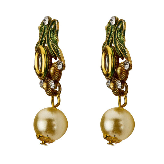 Exclusive Traditional Peacock Desaign Pearl Kundan Necklace With Drop Earrings For Women