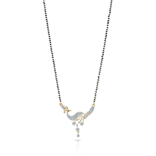 Sparkling AD/American Diamond Studded Ethnic Traditional Black Beads Peacock Mangalsutra Pendant Set with Earrings for Women