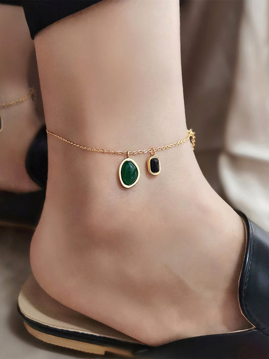Anklets for Women and Girls Fashion Golden Anklets for Women | Gold Plated Green Ston Anklets Payal for Women | Birthday Gift For Girls & Women Anniversary Gift for Wife