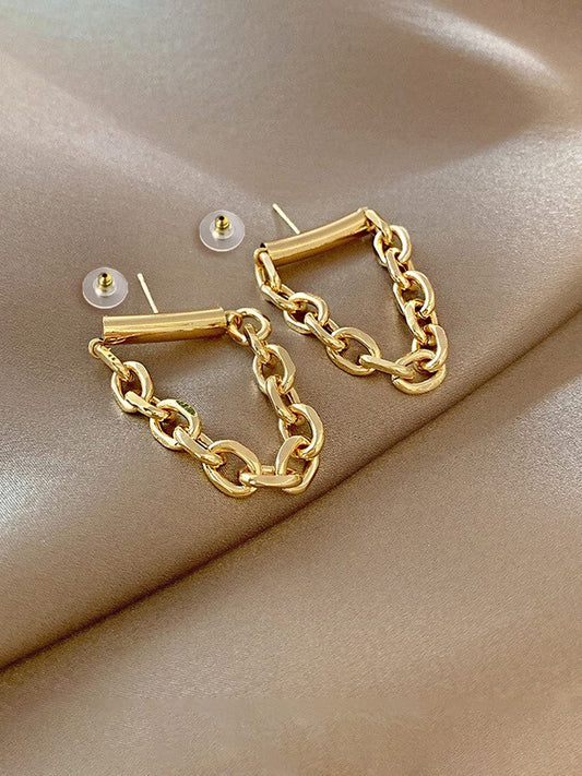 Drop Earrings for Women | Fashion Earrings for Girls Gold Plated Link Chain Drop Earring | Western Style Women Earrings | Chic Reverie | Birthday Gift For Girls Anniversary Gift for Wife