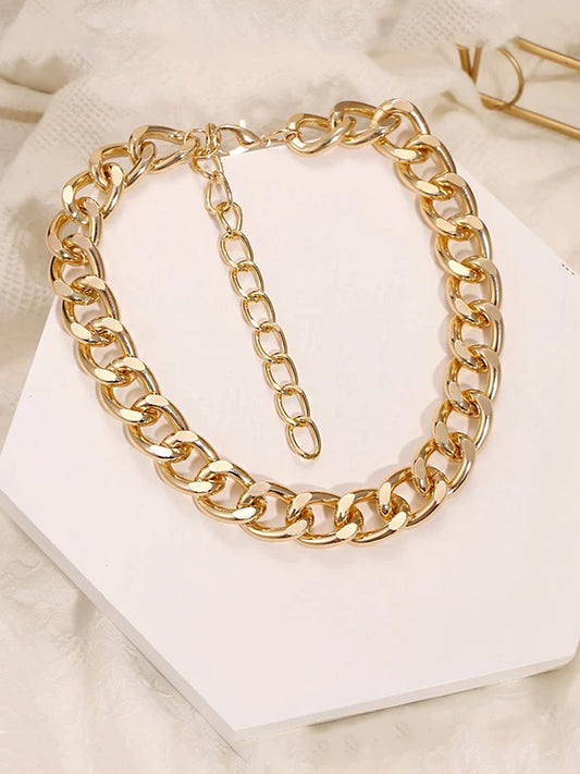 Choker Necklace for Women Gold Link Chain Choker Necklace Thick & Broad Chain Choker Necklace for Women and Girls.