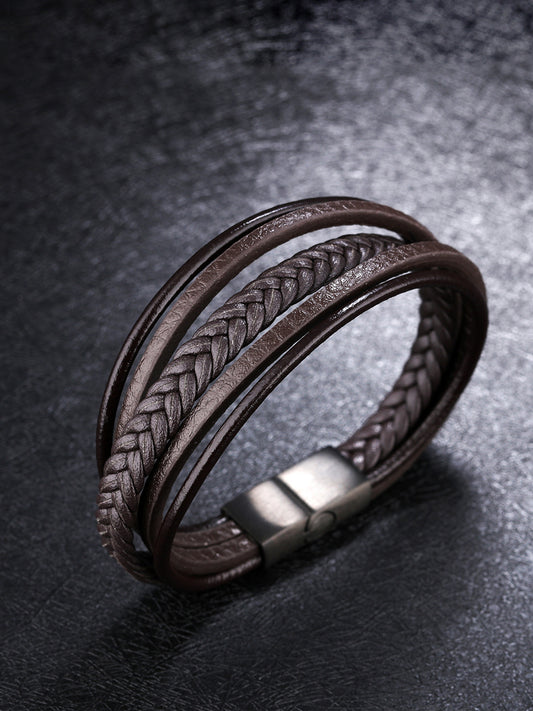 Bracelets for Men and Boys Brown Leather Bracelet for Men | Magnetic-Clasp Genuine Leather Braided Wrap Bracelets for Men | Birthday Gift for Men and Boys Anniversary Gift for Husband