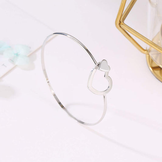 Valentine Collection Creative Dual Openwork Love Heart Silver Plated Kada Bracelet for Women and Girls