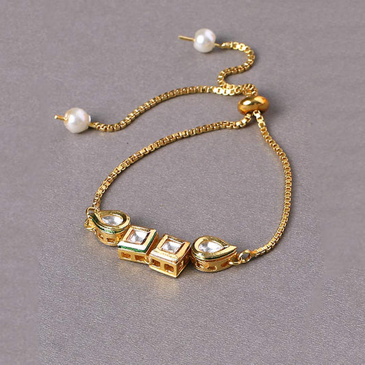 Bracelet for Women and Girls Fashion Golden Kundan Bracelets for Women and Girls | Gold Plated Charm Chain Bracelet | Birthday Gift For Firls & Women Anniversary Gift for Wife