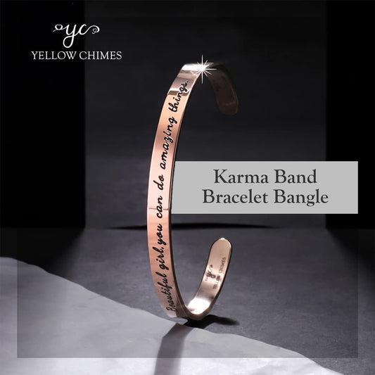 Valentine Gift for Girls Inspirational Gifts Message Engraved Karma Band Bracelet Bangle Mirror Polish Stainless Steel Copper Kadaa for Women