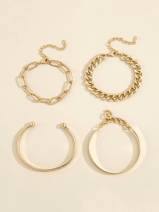 Combo Bracelets for Women Set of 4 Gold Plated Stack Chain Bangle Bracelet Set for Women and Girls
