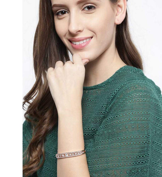 Latest Fashion Elegant Stainless Steel Rose Gold Plated Crystal Statement Style Kada Bracelet for Women and Girls, M (YCFJBR-323KDABG-RG)